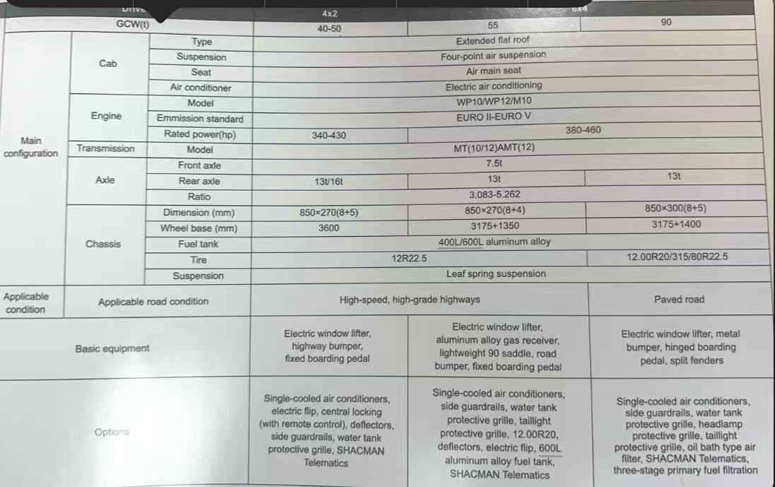 - Axlar och upphängning: Framaxeln antar man 9.5T -teknik, och bakaxeln antar 13T eller 16T man axel. Suspensionssystemet antar höghållfast stålplattfjäder, vilket tål effekterna av tunga belastningar och säkerställa stabiliteten och hållbarheten hos lastbilen under komplicerade vägförhållanden.