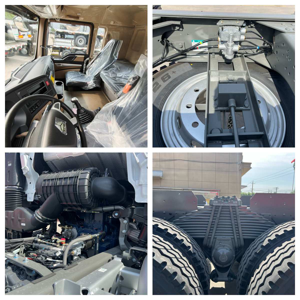 Sinotruk Howo 6x4 TX lastchassitbil för Etiopia är utrustad med avancerad MC-serie-motor, med ett brett kraftområde från 266-440PS, och matchar med HW Series-växellådan avSinotruk Howo, som har hög transmissionseffektivitet och flexibel växellåda. Hela Sinotruk Howo 6x4 TX-lastchassitbilen för Etiopien är utrustad med fyra krockkuddar suspensionssäten, fyrpunkts fullflödande luftfjädringshytt, LCD-uppvärmning och kylning av luftkonditionering och andra bekväma konfigurationer, som ger en bekväm körmiljö för förare och passagerare. De främre och bakaxlarna och bromssystemet antar internationell avancerad teknik, som garanterar den höga bärförmågan och drivande säkerheten för fordonet.