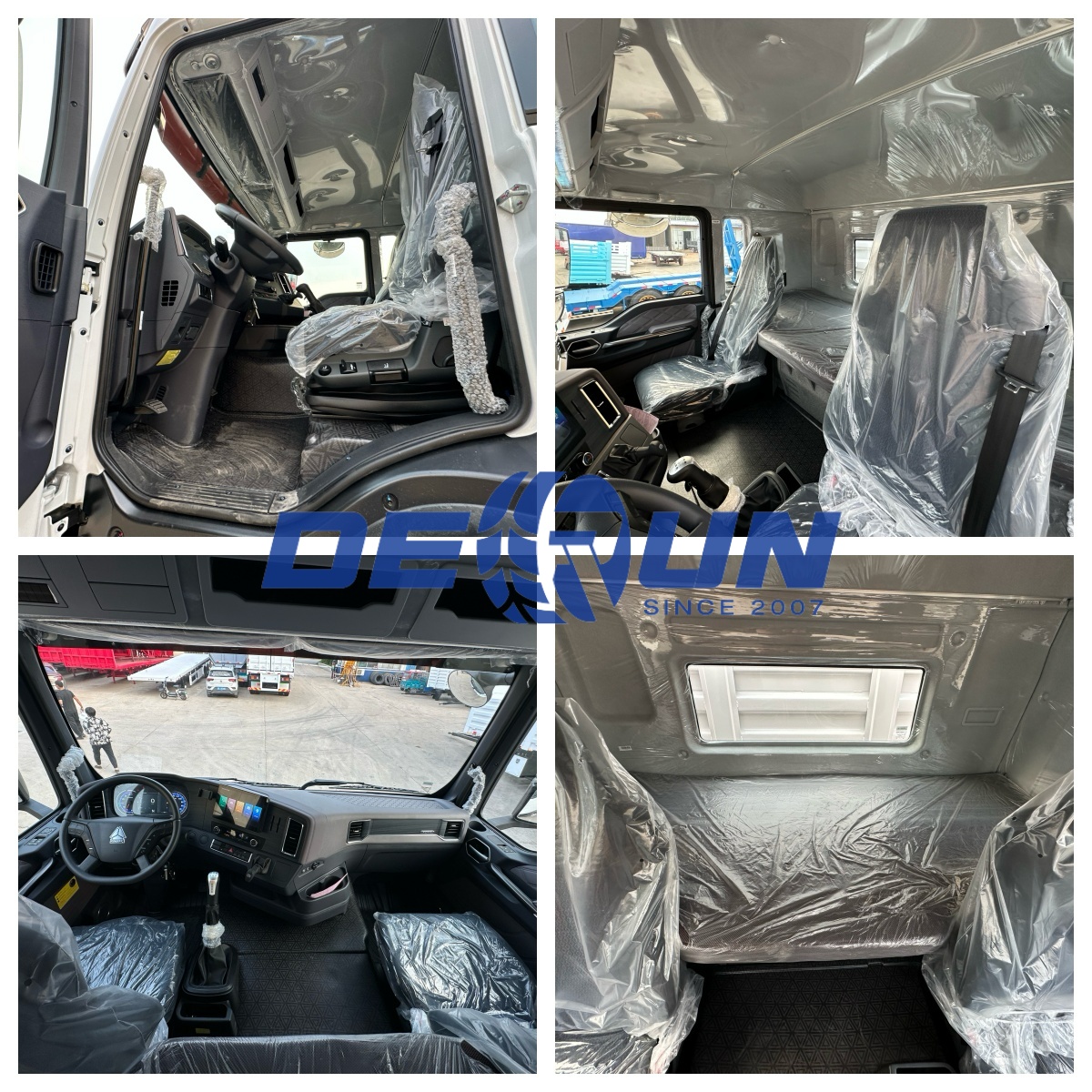 Chassit på staketlastbilen med dragstångsledare gjord av högstyrka legeringsstål, med längsgående balkar bildade i en enda stämplingsprocess och förstärks med inre plattor i kritiska spänningsområden för att balansera bärande kapacitet och vridningsstyvhet; Både lastbilen och släpvagnen använder en kombination av multilövfjädrar och rörformiga stötdämpare, med en tvärgående stabilisatorstång framtill och lyftar krockkuddar på baksidan, vilket minskar bränsleförbrukningen vid lossning och förbättring av stabilitet när den är helt laddad. Lastbilens elektriska system är utrustat med dammsäkra och sandsäkra ledningsnät, förstärkta luftfilter och ökenfilter för att anpassa sig till de dammiga förhållandena i den afrikanska öknen. All belysning använder LED -källor för hög synlighet på natten. Hytten har ett fyrpunktssuspensionssystem, luftkudda säten, elektriska fönster, en multifunktionell ratt och en bred säng för långdistanskomfort. Trailern antar en lätt lastfackstruktur med avtagbara sidopaneler för enkel belastning och lossning av bulkvaror som spannmål, gödningsmedel och byggmaterial.